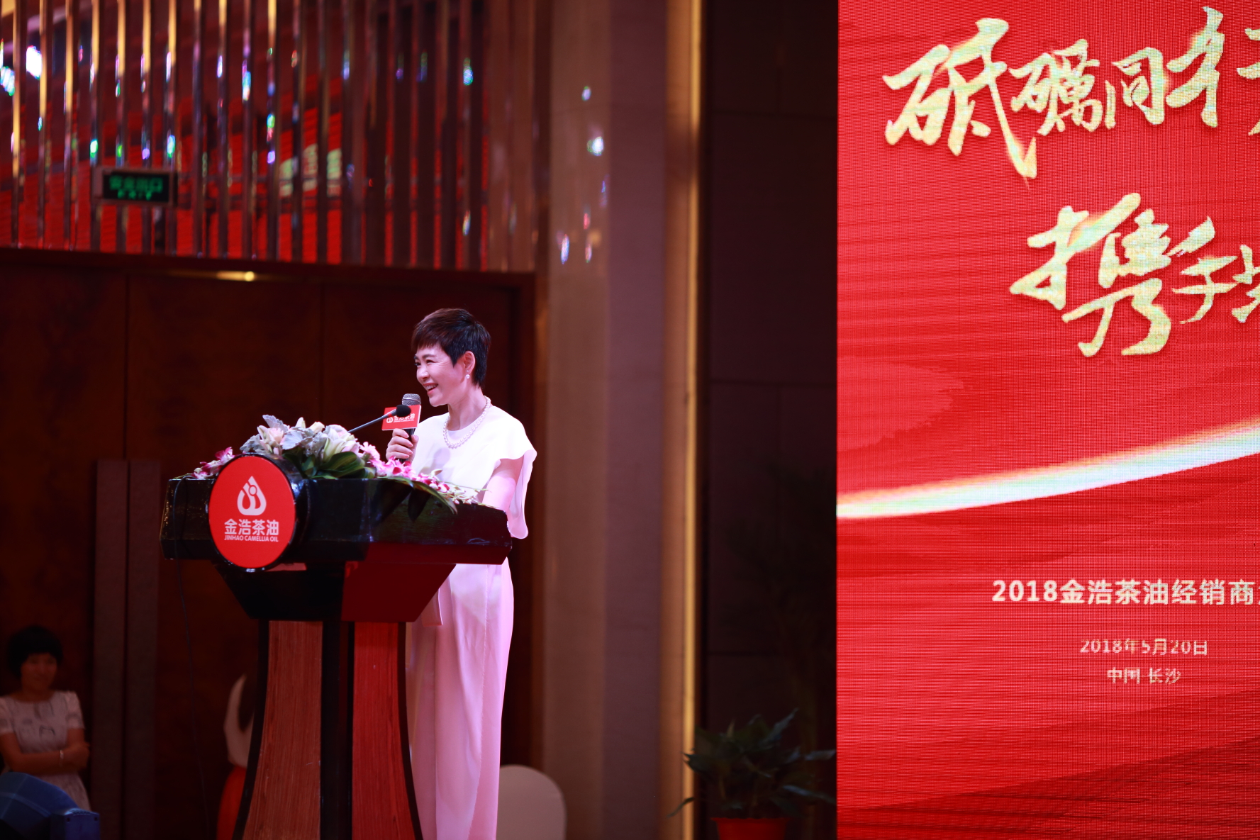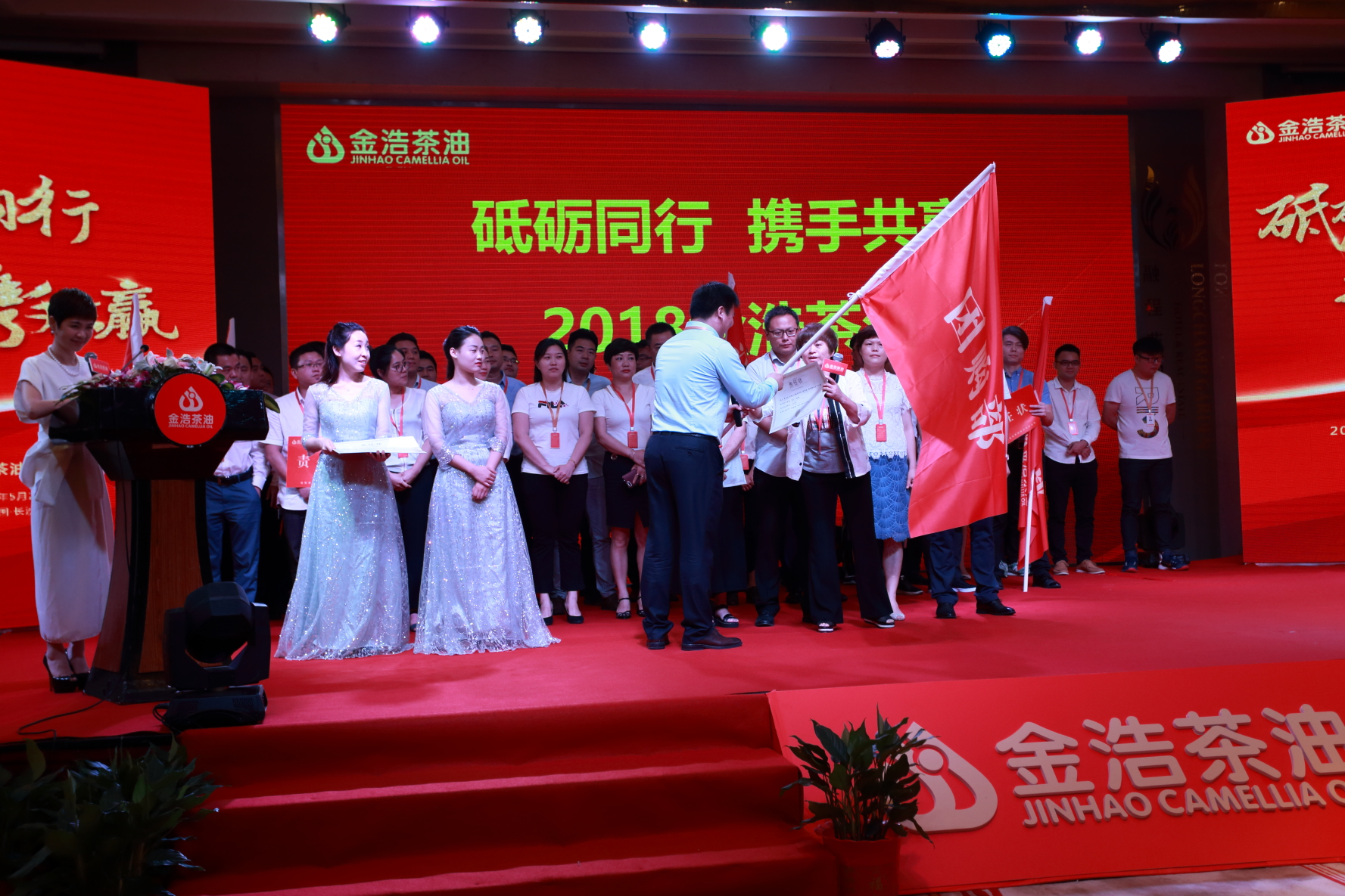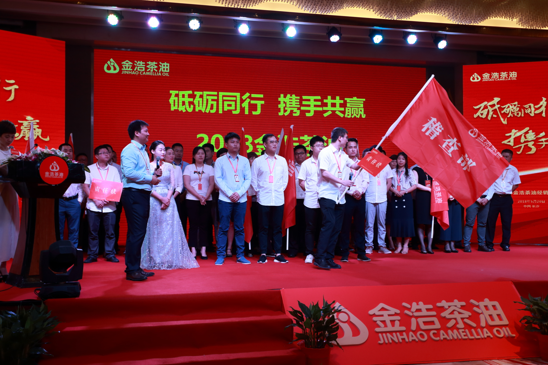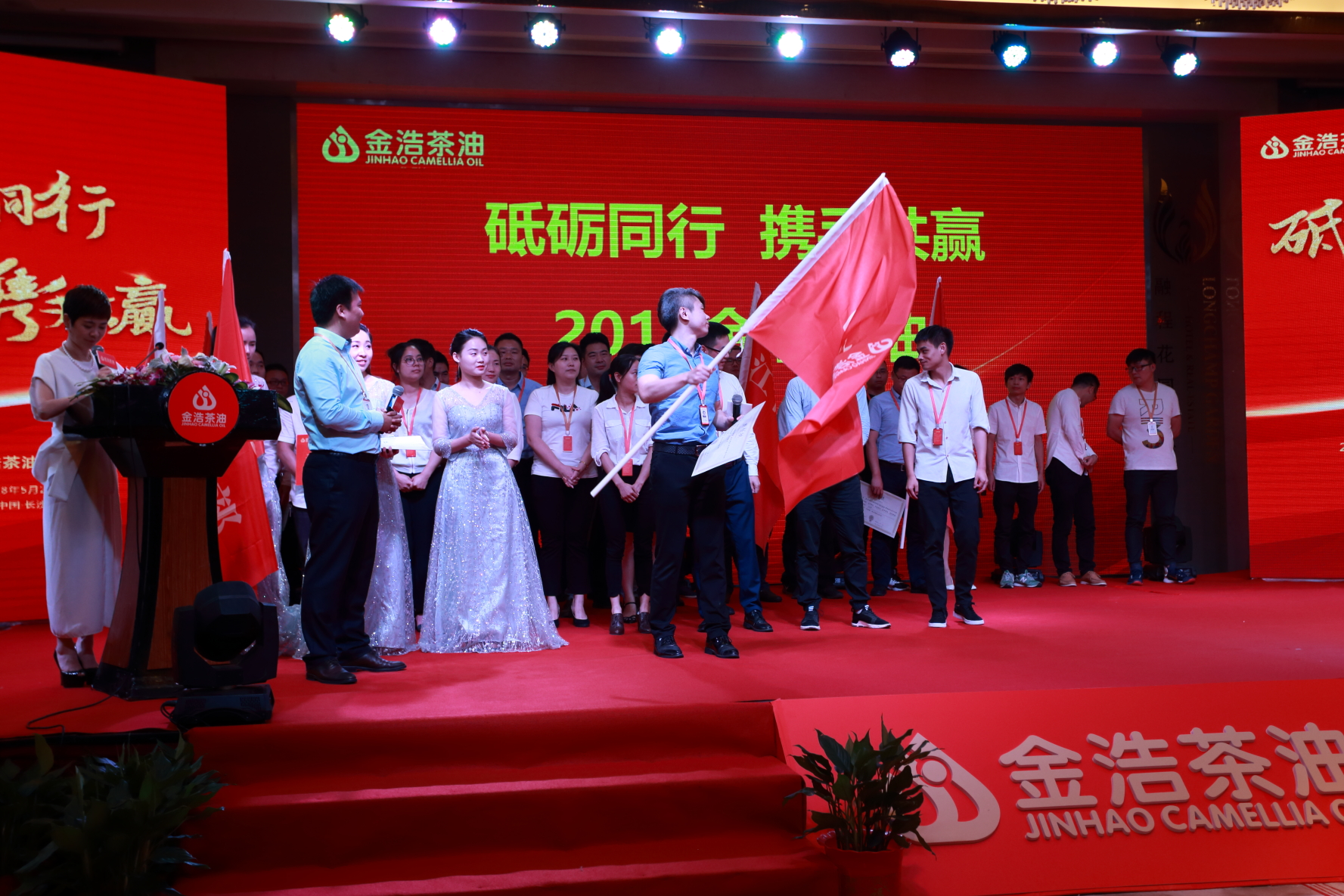 大會特邀湖南著名主持人王燕擔當主持。王燕對于金浩茶油在規模效益、品牌效應、機制效能等方面取得的成績表示高度贊揚,并期待金浩茶油在未來的發展進程中不忘初心,砥礪前行,充分發揮行業領軍企業作用,為行業健康發展做出貢獻,代表中國食用油企業征戰海外,讓中國品質揚名全球。