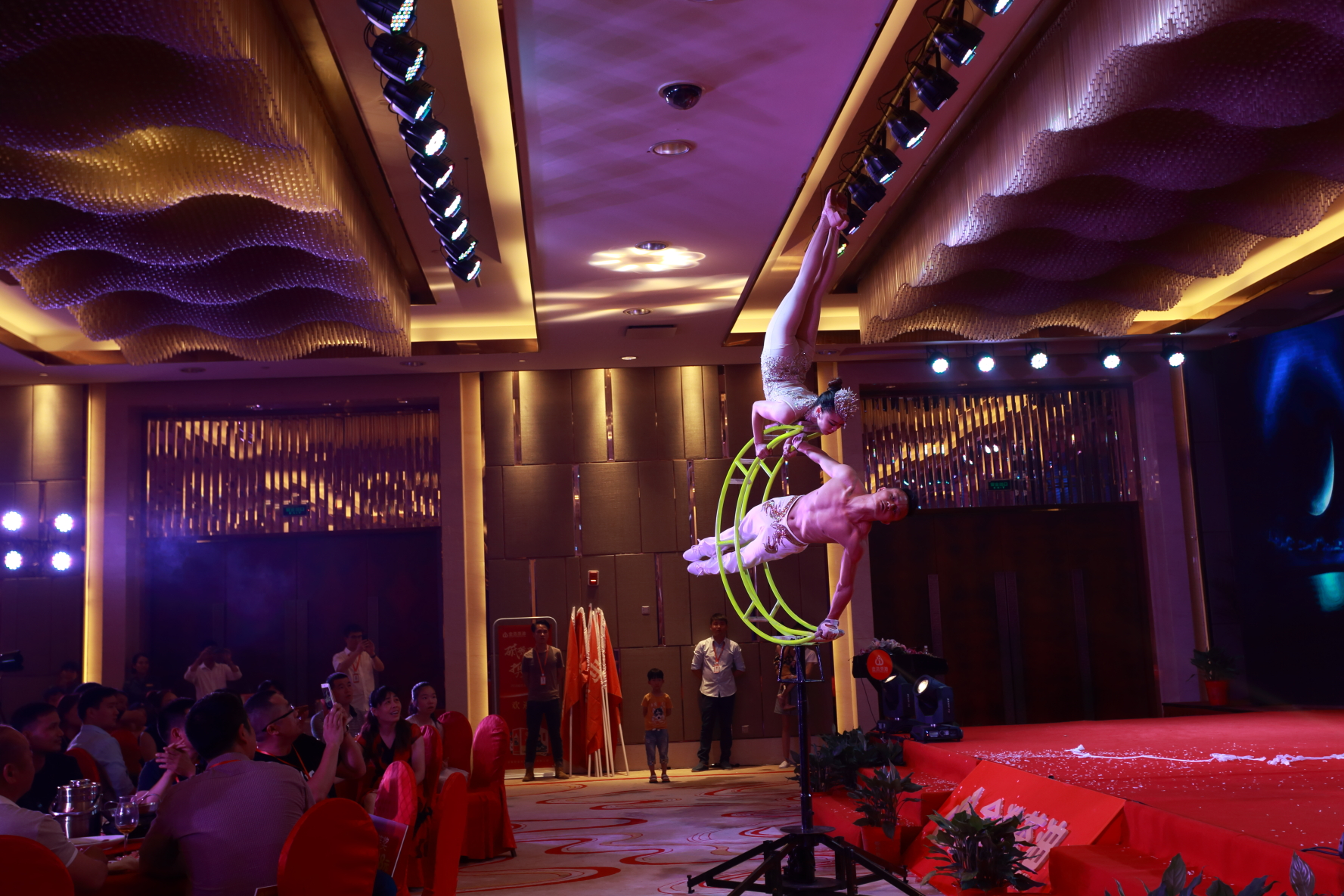 我們在歡歌熱舞中開啟了晚宴環節,在音樂與舞蹈的交相映襯下,給經銷商朋友帶來了視覺盛宴,也傳遞了金浩茶油滿懷誠意之心。耳熟能詳的曲目演繹之時,贏得了諸多朋友的大合唱,博得滿堂彩。顛覆所有感知,充滿奇跡發生的魔術表演,風趣幽默搞笑的東北二人轉,驚險紛呈的高難度雜技表演等一系列藝術表演,打造了全感官藝術盛宴。