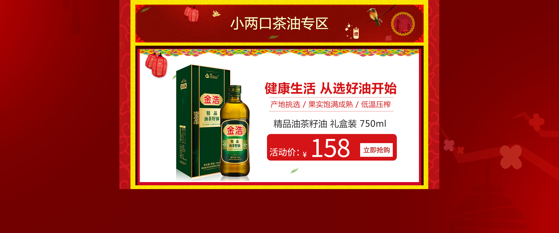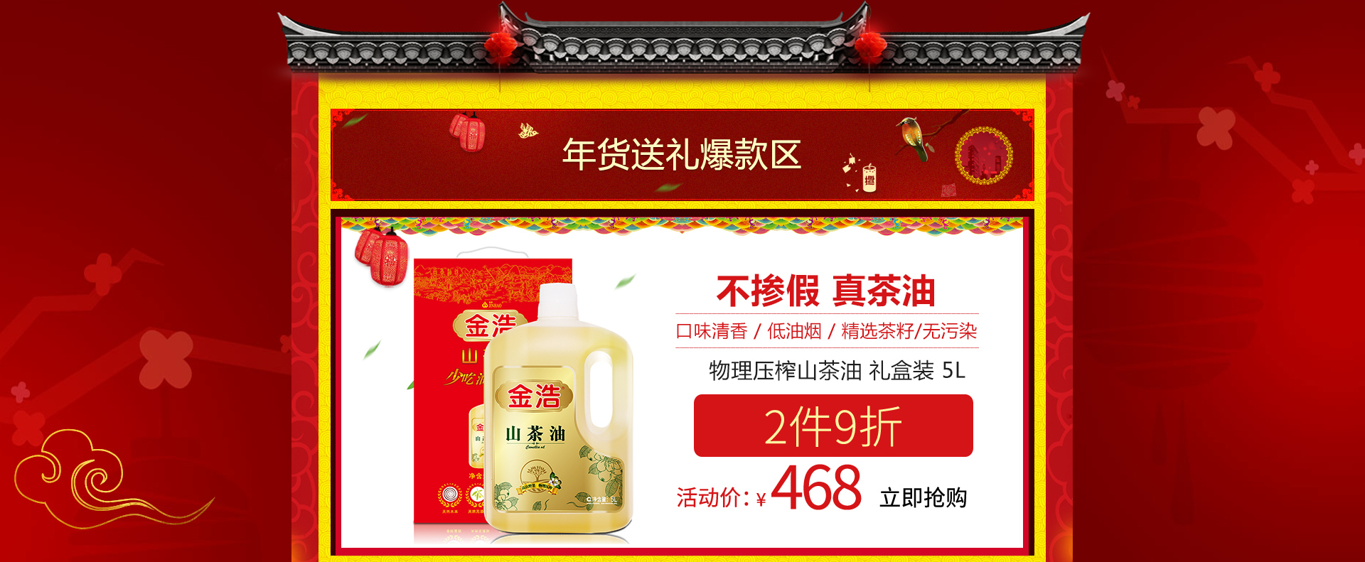 年度最后 最大 電商戰役已經打響 要囤積年貨 要送油禮朋友 趕緊上車 金浩茶油京東旗艦店 全場兩件9折