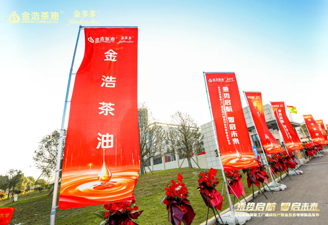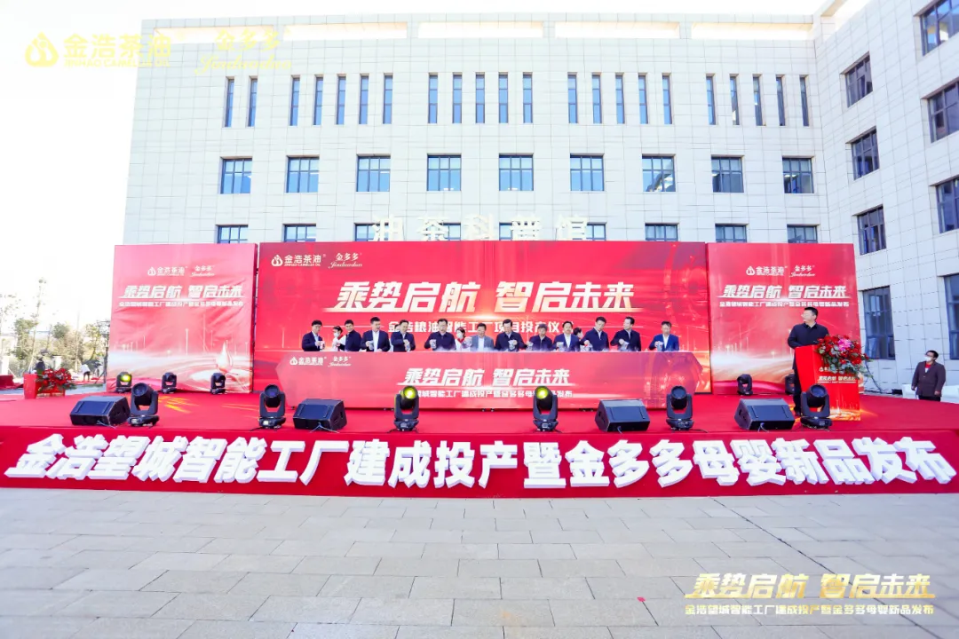 2021年11月30日上午,“金浩望城智能工廠建成投產暨金多多母嬰新品發布會”儀式在長沙市望城經開區銅官工業園內舉行。這標志著金浩茶油將以行業內首屈一指的智能化、自動化的高標桿生產中心為依托,以高端茶油產品為核心,續寫“茶油家族”的輝煌,打造中國油茶百億企業!