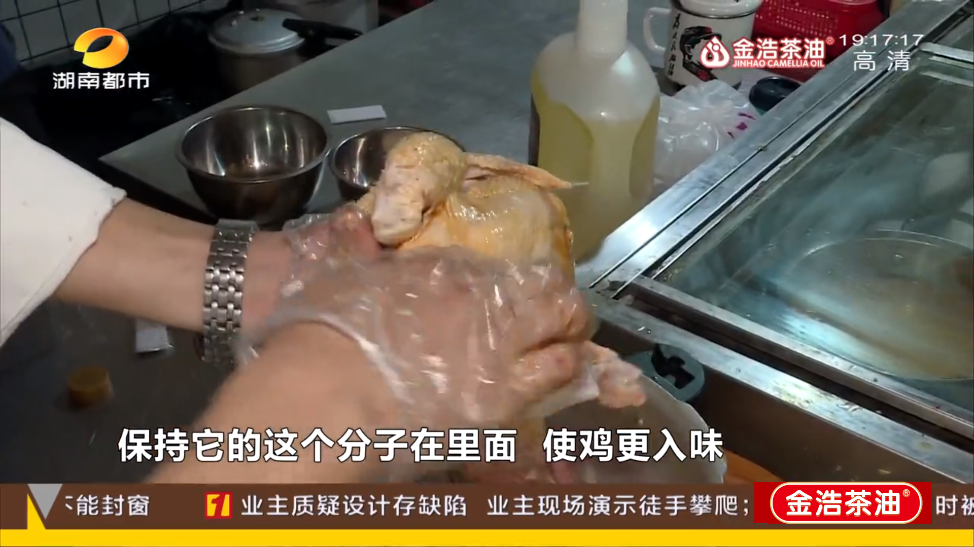 ▲利用醬油、生抽、味極鮮等組成的濕佐料對整雞進行涂抹,并按摩3-5分鐘