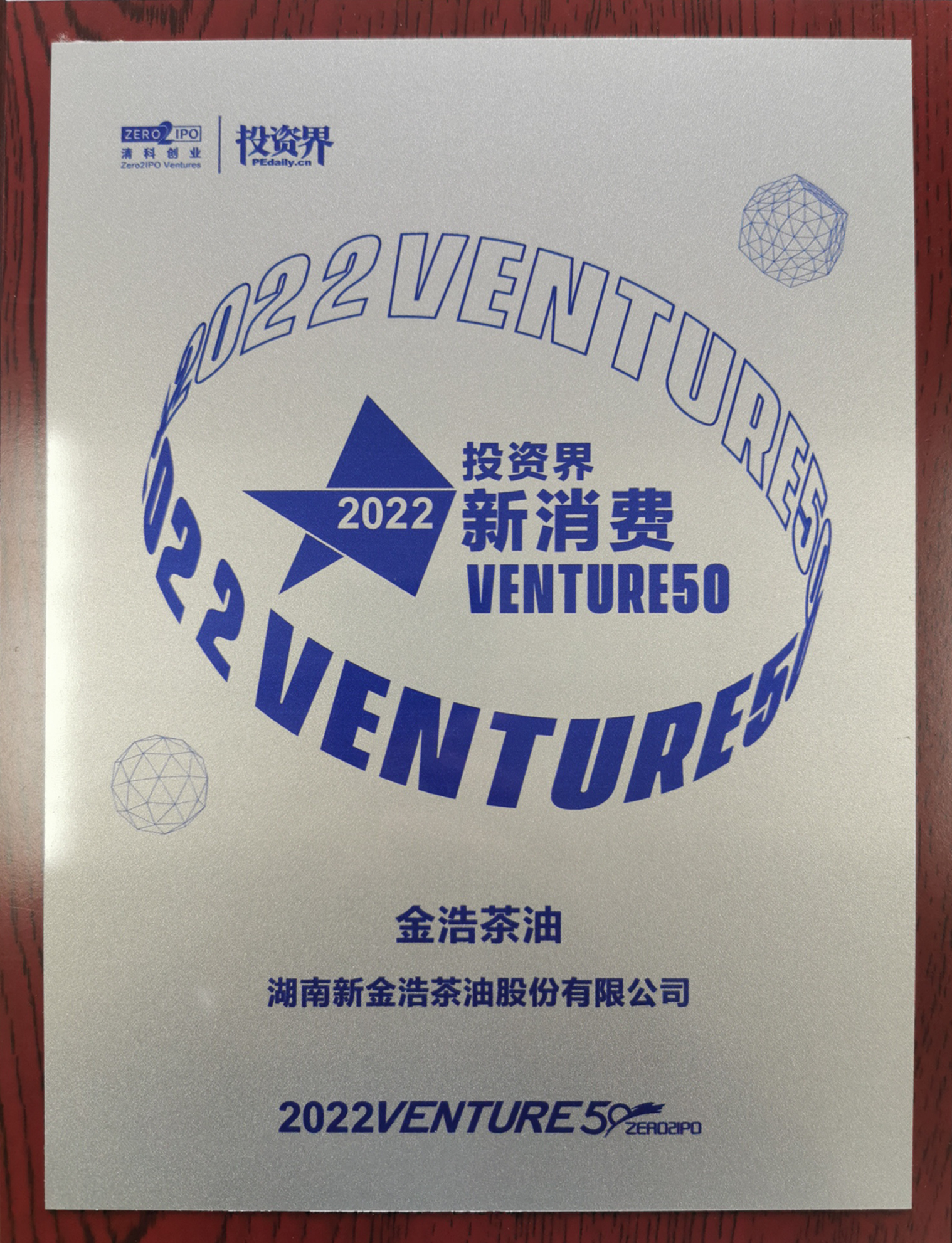 2023年1月11日,由清科創業、投資界發起的2022Venture50榜單最終揭曉。金浩茶油從參選的3000余家企業中脫穎而出,榮登2022Venture50行業榜單——2022投資界新消費Venture50,成為新消費賽道具有行業風向標意義的未上市企業之一。