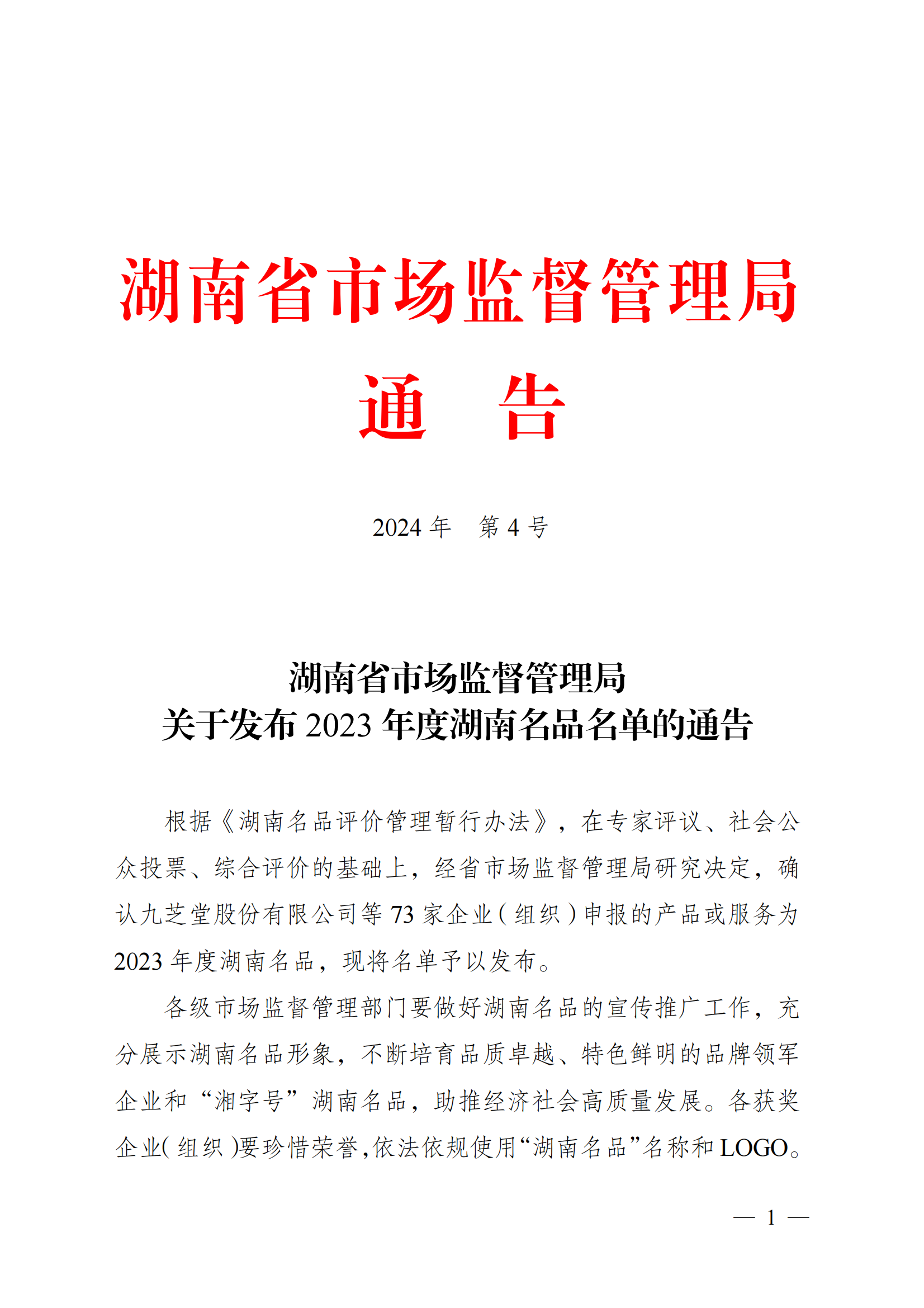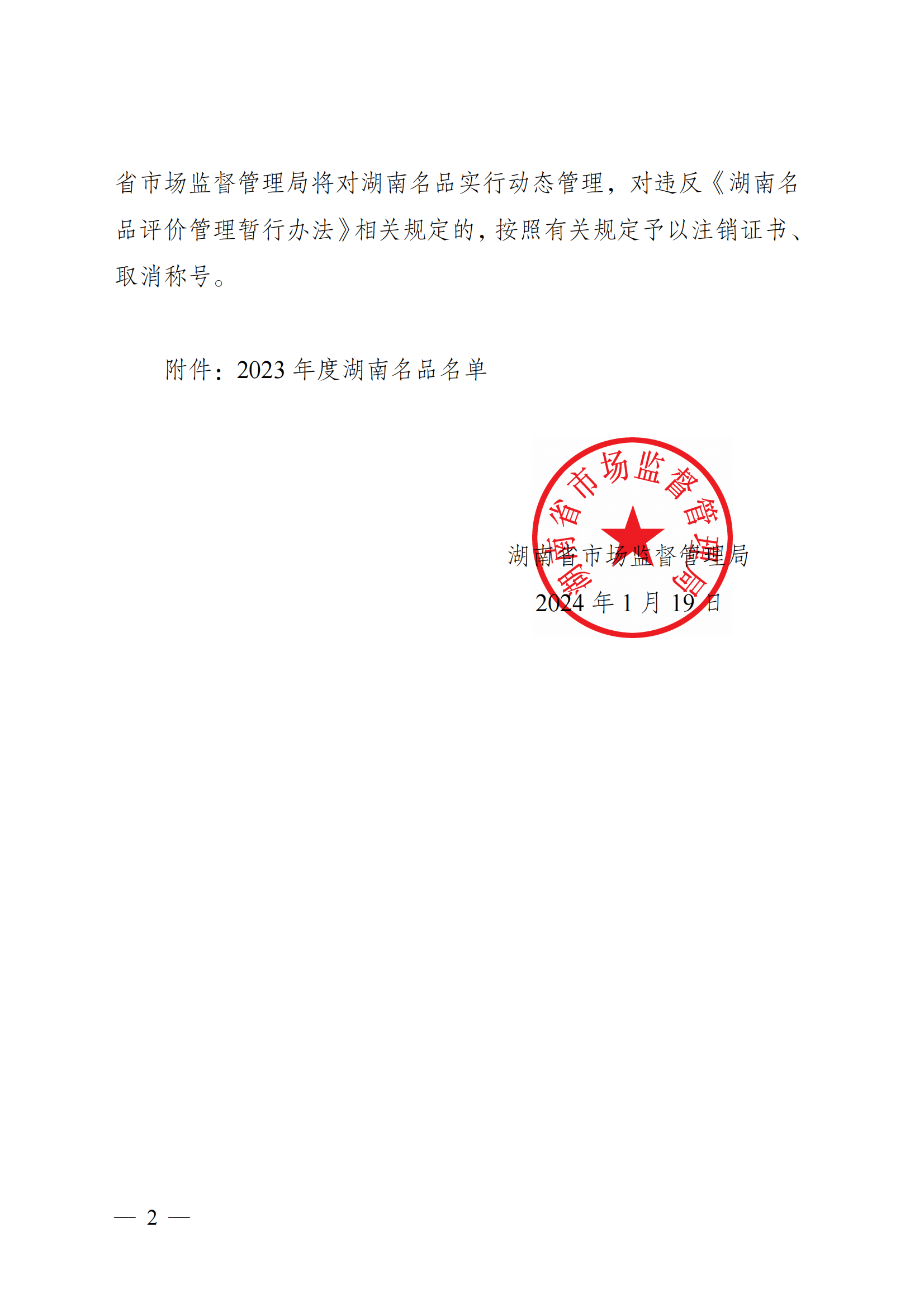 關(guān)于發(fā)布2023年度湖南名品名單的通告