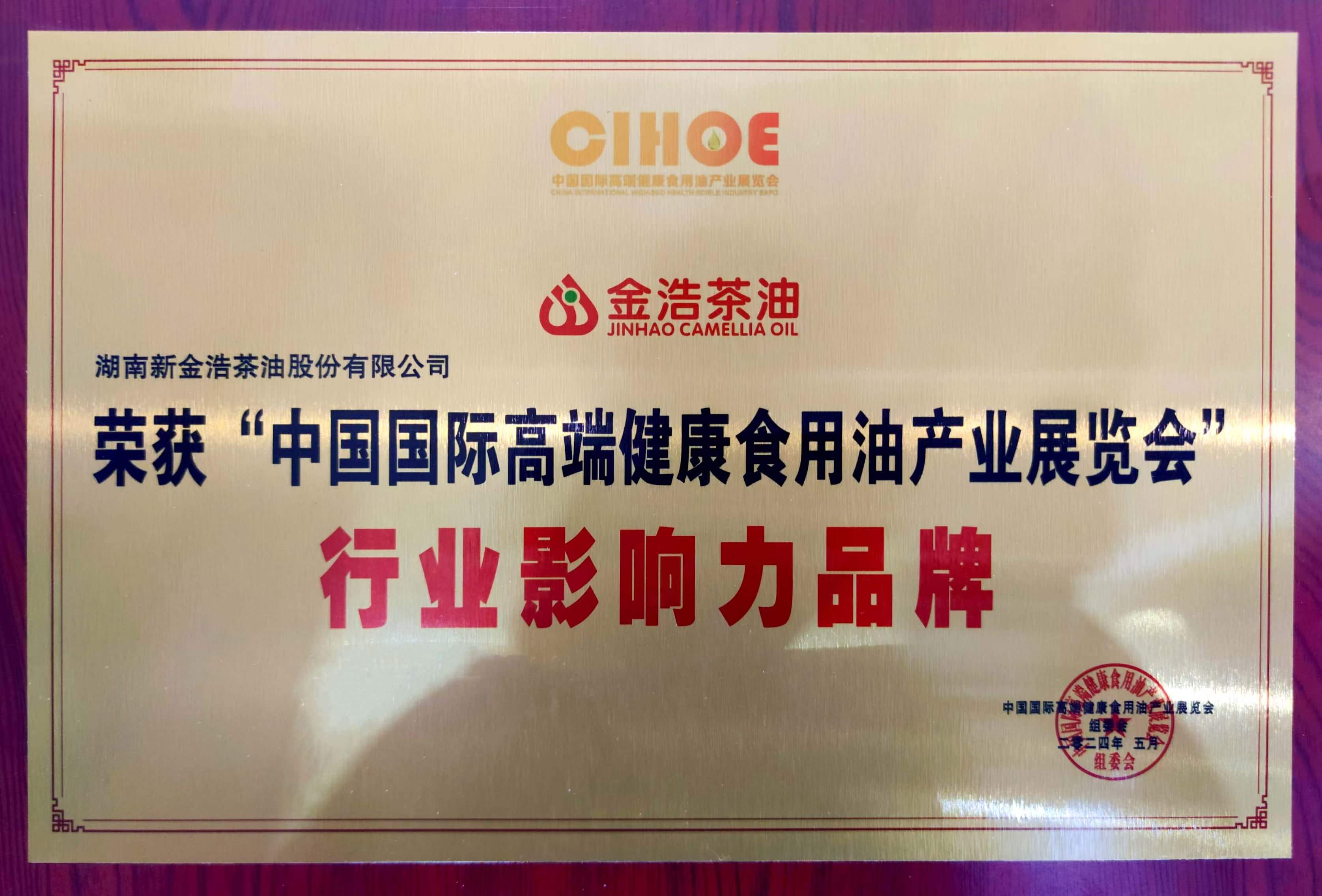 金浩茶油(湖南新金浩茶油股份有限公司)攜旗下明星產(chǎn)品參展,驚艷亮相“湖南茶油”展區(qū),并再度獲評中國國際高端健康食用油產(chǎn)業(yè)展覽會“行業(yè)影響力品牌”。