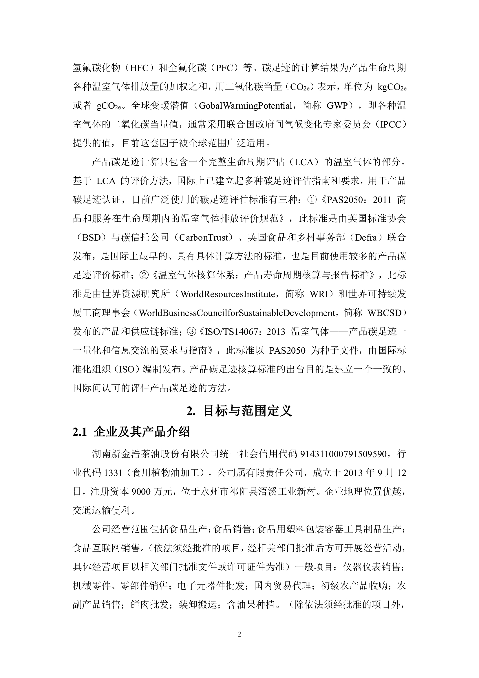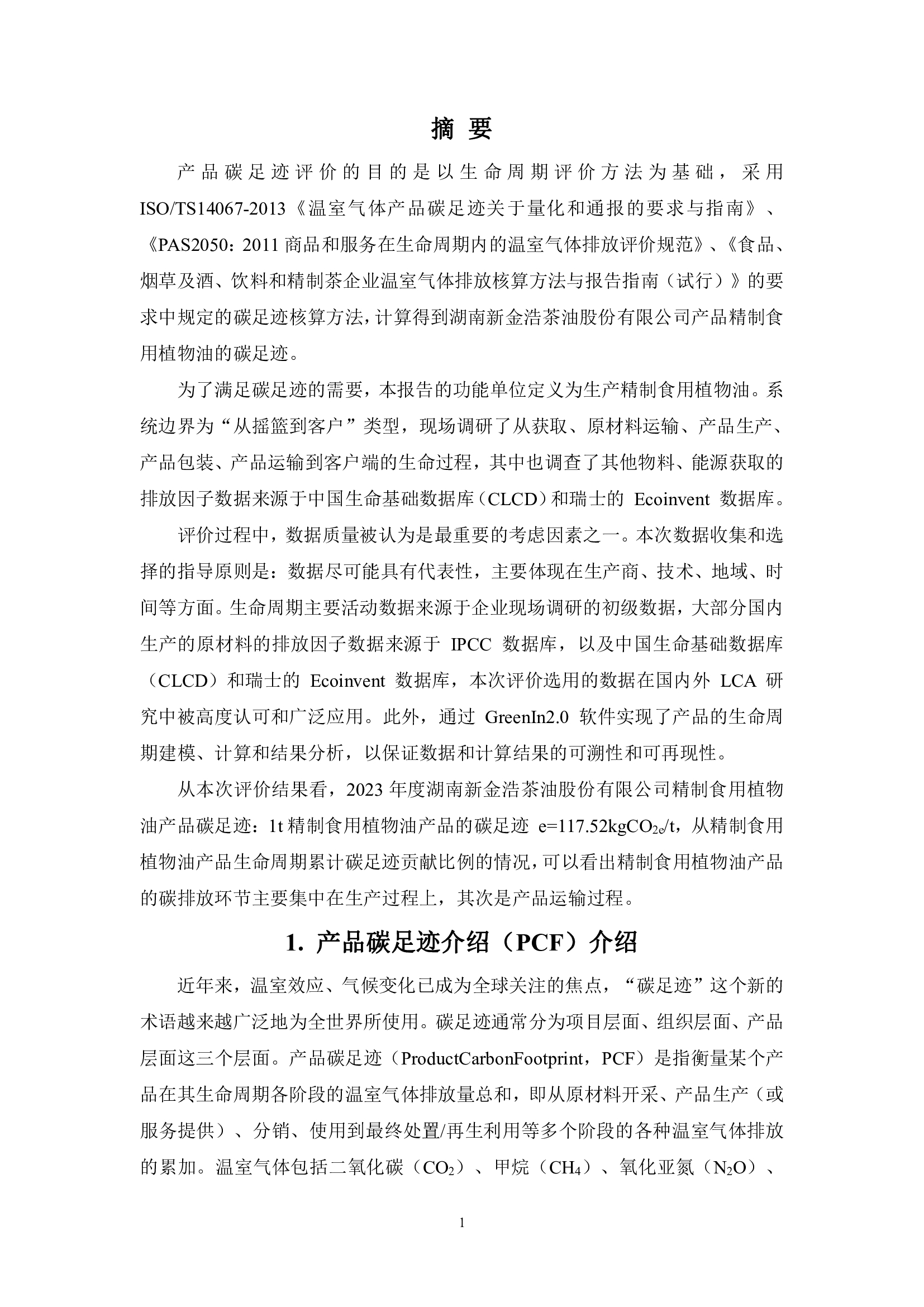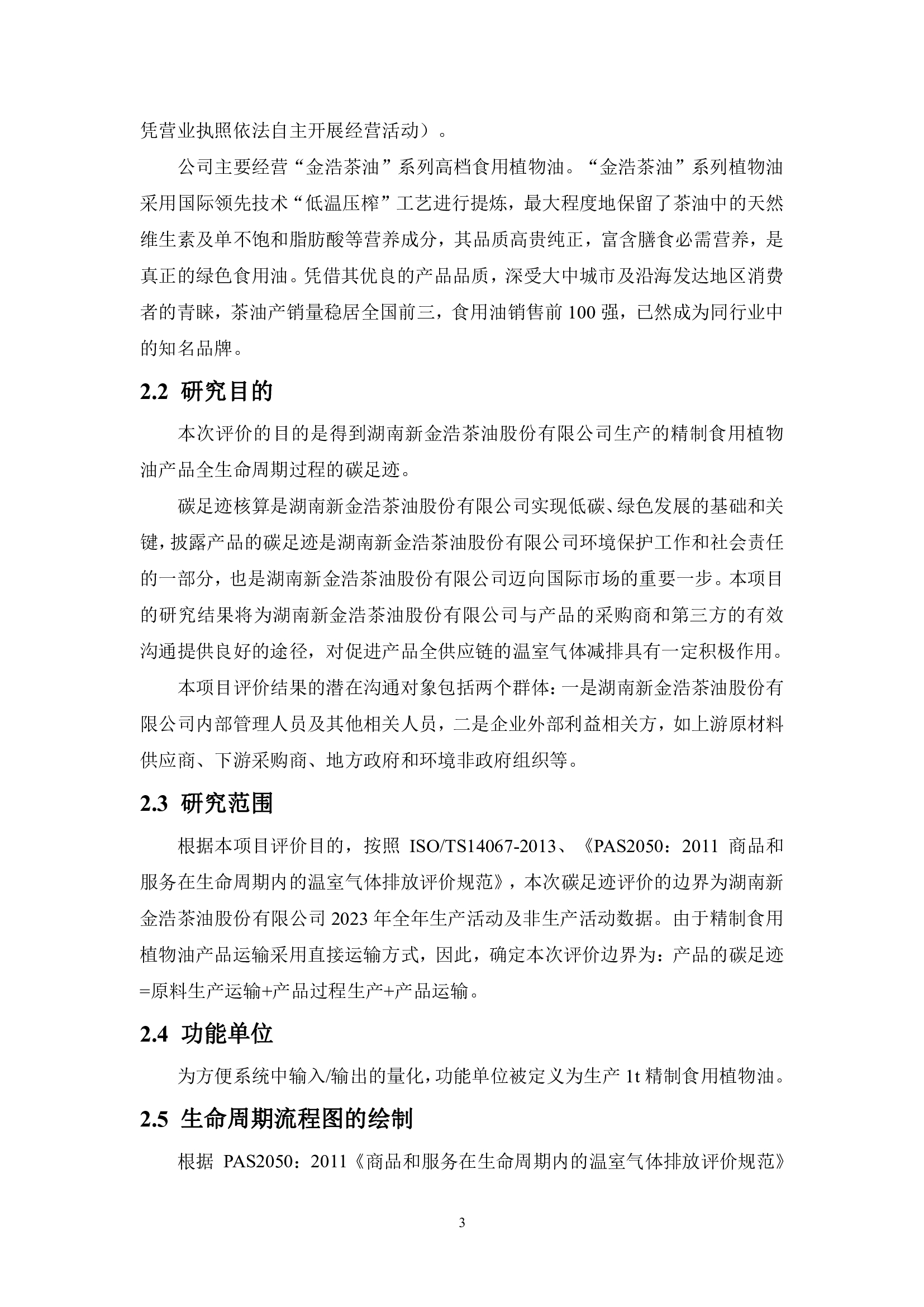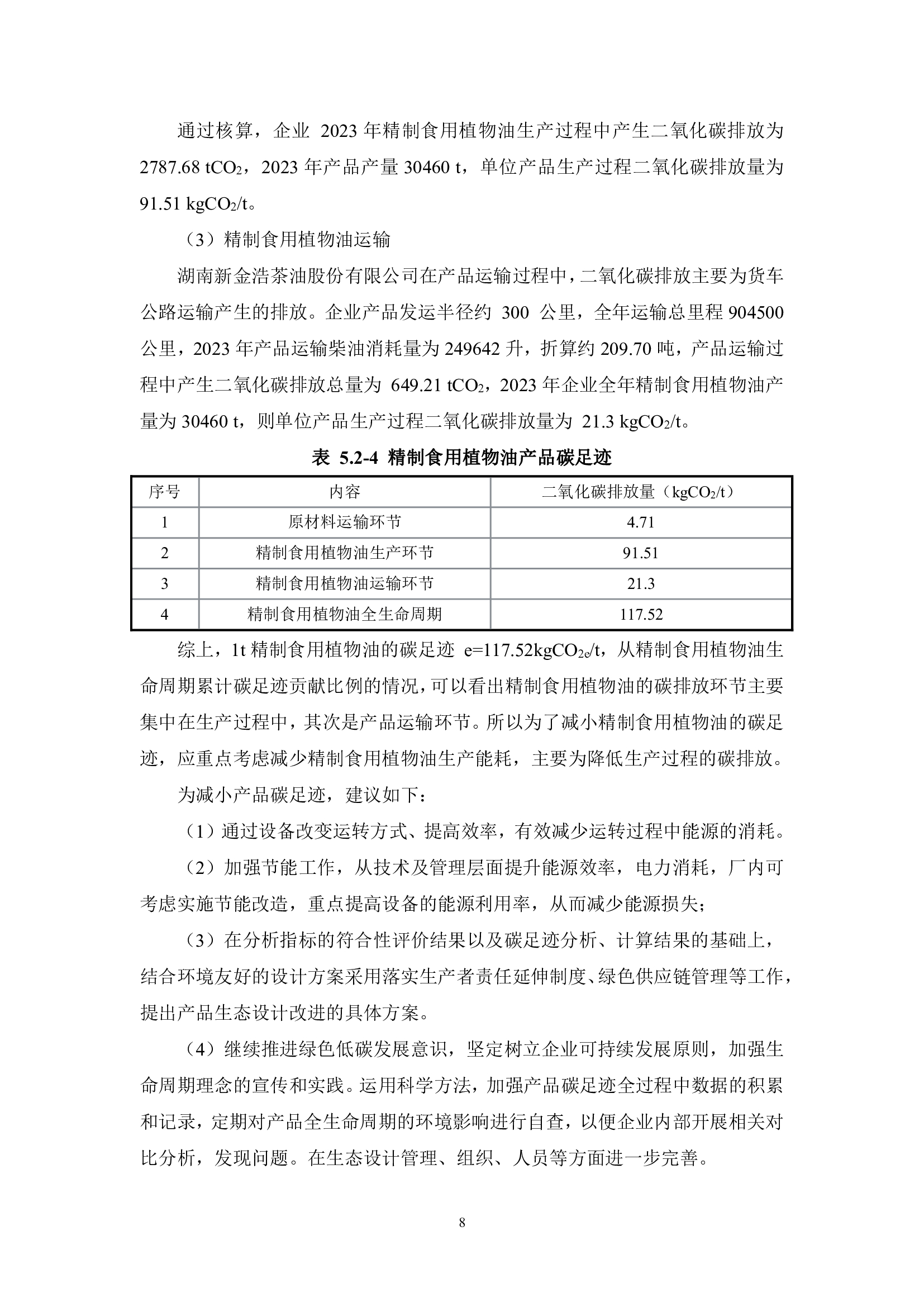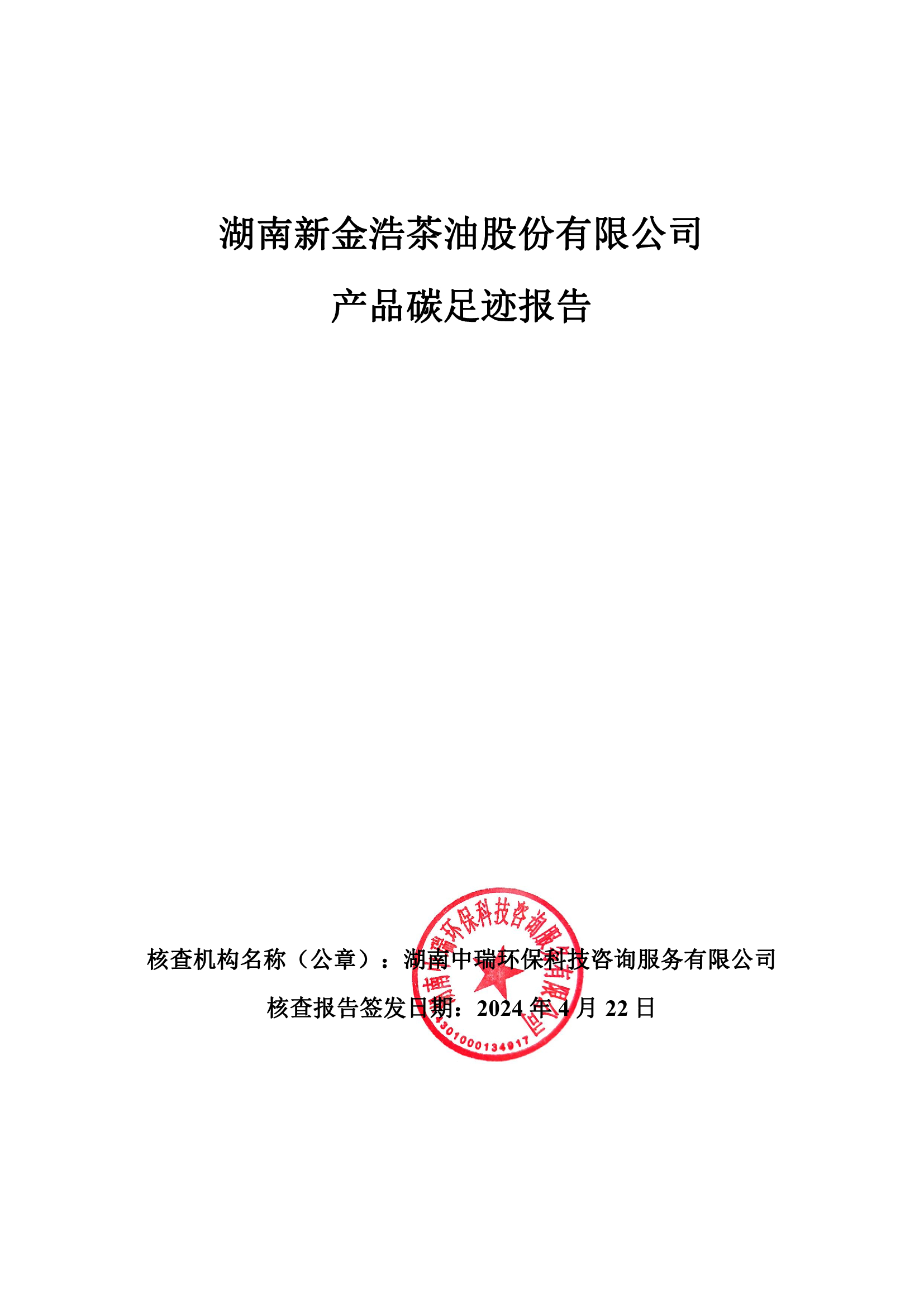 湖南新金浩茶油股份有限公司產品碳足跡報告。