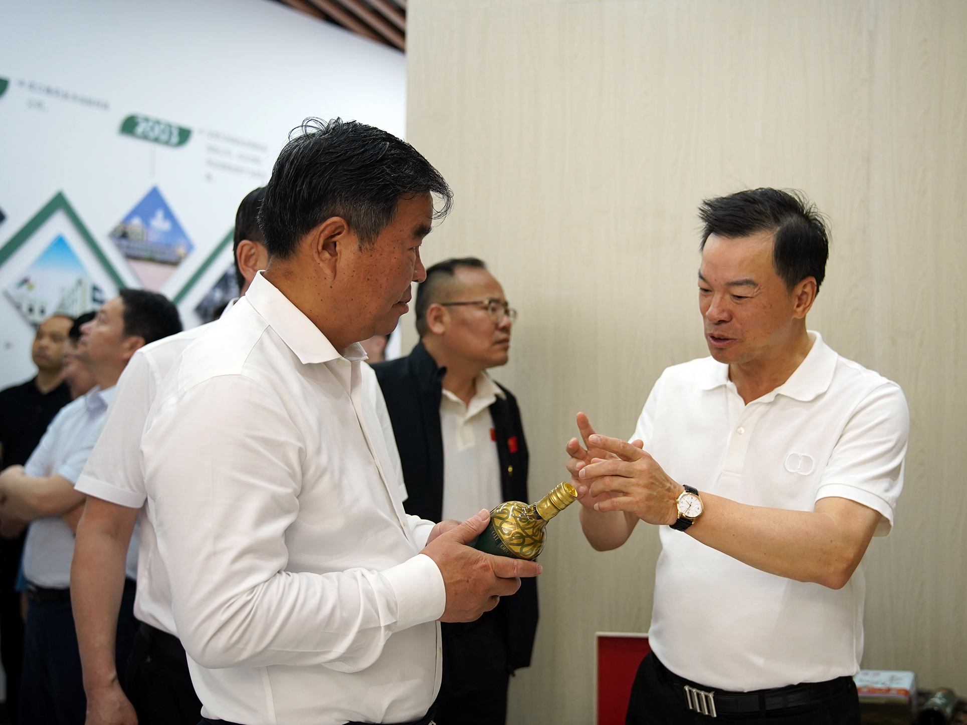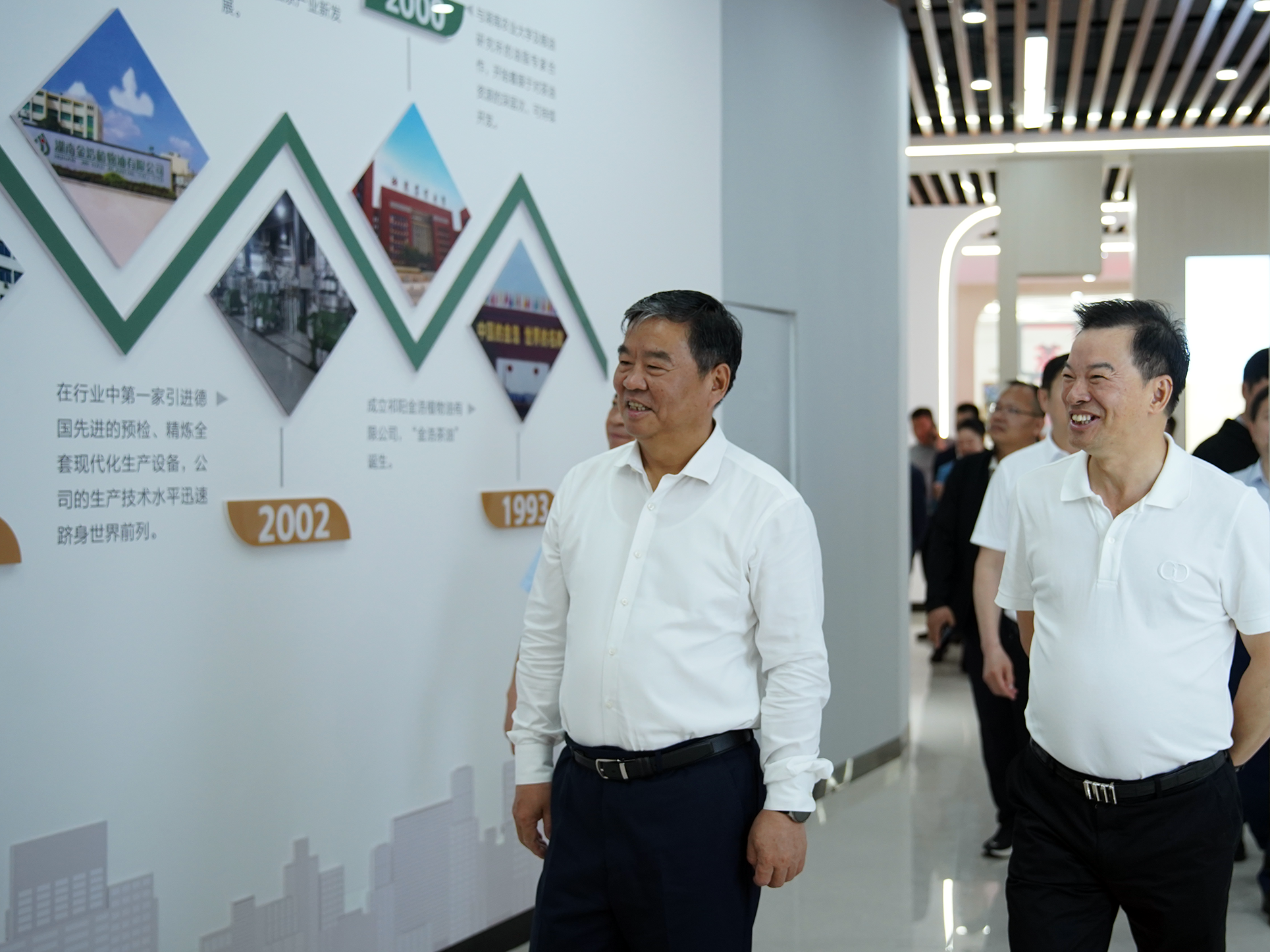 金浩茶油董事長劉翔浩陪同領導及調研組一行,實地察看了金浩茶油科普館、鮮果鮮榨車間、智能灌裝生產線及國家級質檢實驗室等。