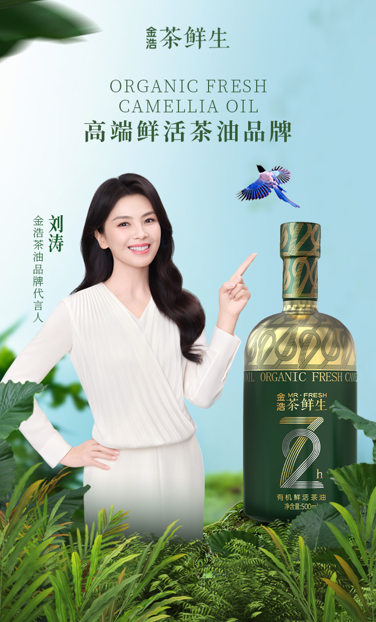 劉濤健康、優雅、專業的公眾形象與金浩茶油“自然、品質、創新”的品牌內核高度契合,雙方將共同傳遞“鮮活人生”的生活哲學,助力中國家庭餐桌升級。