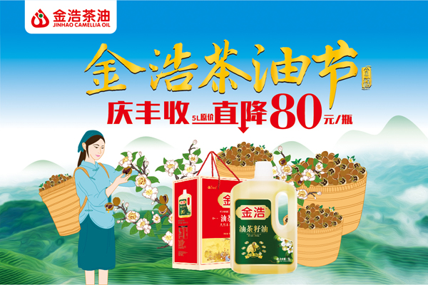 為慶祝金浩示范油茶基地大豐收,同時推動高品質茶油走進千家萬戶, 金浩集團將 于12月起舉辦金浩茶油節 主題活動, 原價基礎上5L純茶油產品單瓶直降80元 ,在最大程度上讓利消費...